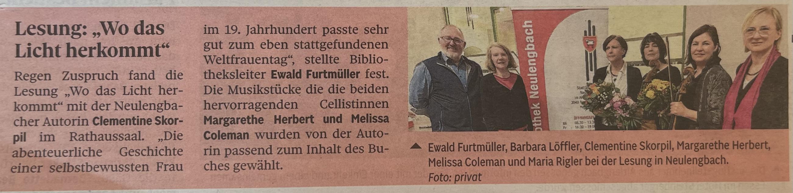 Bericht zur Lesung Magda Woitzuck Juni, 2025 Die aus Neulengbach stammende Autorin Magda Woitzuck las am Montag, 26.5., für die Stadtbibliothek Neulengbach.