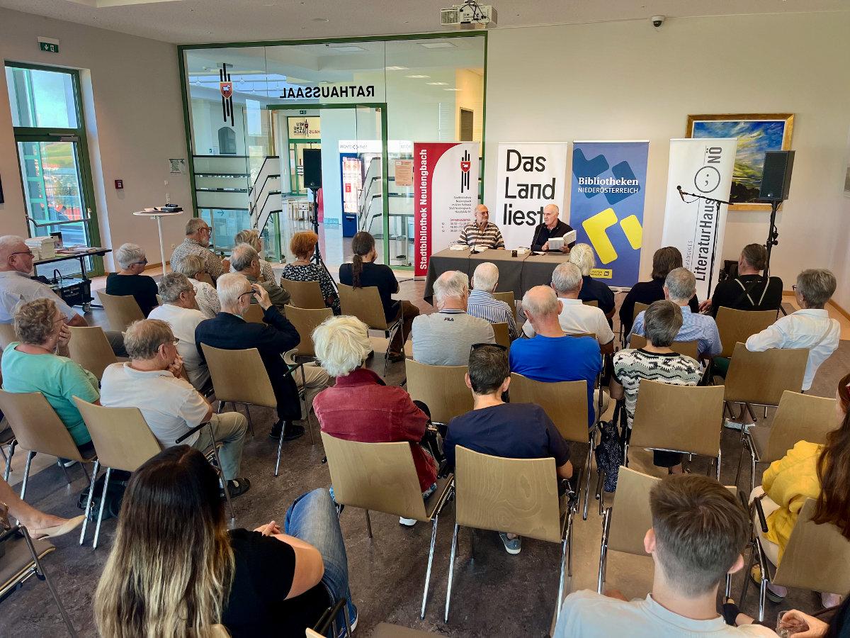 Das Land liest Oktober, 2025 Das Land liest 2025 - Kurzbericht Diskussion am 21.09.2025 Am 21.9. lauschten ca. 30 interessierte Personen den Ausführungen des Autors Richard Weihs und des Moderators Klaus Zeyringer bei der Lesung „Zertrümmerte Erinnerung am Semmering“.
