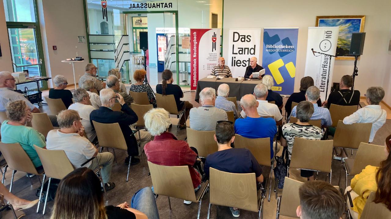 Das Land liest Oktober, 2025 Das Land liest 2025 - Kurzbericht Diskussion am 21.09.2025 Am 21.9. lauschten ca. 30 interessierte Personen den Ausführungen des Autors Richard Weihs und des Moderators Klaus Zeyringer bei der Lesung „Zertrümmerte Erinnerung am Semmering“.